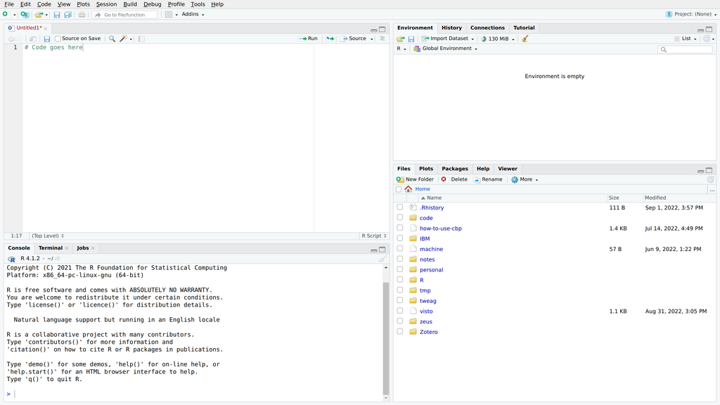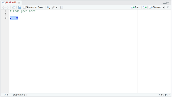 If you select a block of code with the mouse, and click Run, the code will be evaluated in the console panel below.