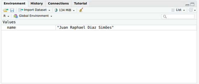 In R, we can store values in variables. For example, in the console, you can store your own name in the name variable, by writing: