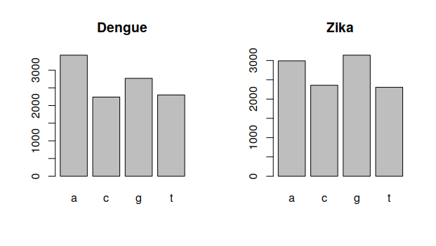 Furthermore, we will use these new functions two analyze two different viruses: the dengue virus (NC_001477) and the zika virus (NC_012532). Both are viruses that cause diseases in tropical regions and are transmitted by mosquitos, so it is interesting to see if we can find simple differences between the genomes.