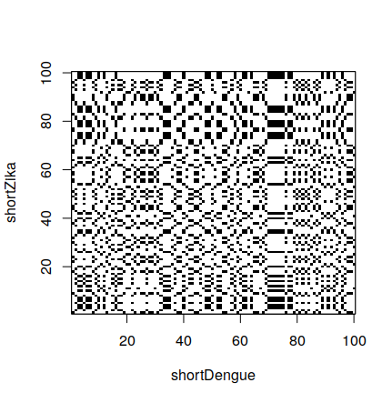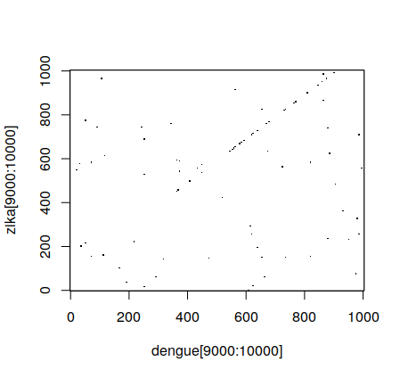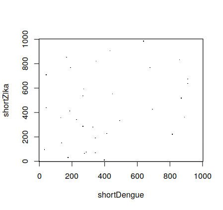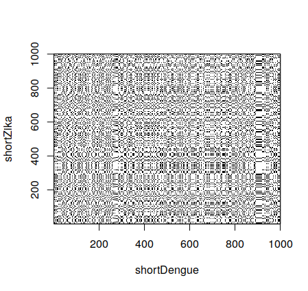 Therefore, instead of doing dotPlot(dengue1000,zika1000) getting: