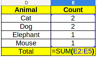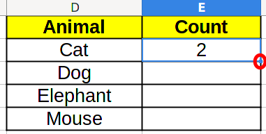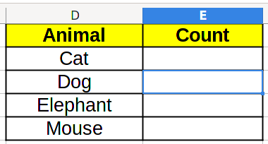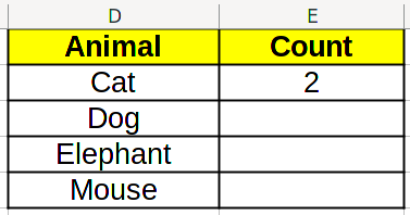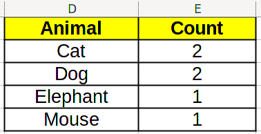 | Animal | Count |