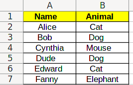 | Name | Animal |